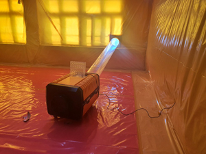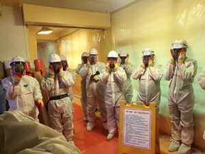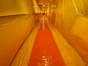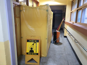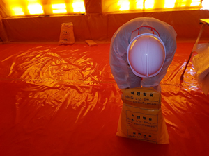 불침투성 재질의 비닐 시트로 벽과 바닥을 틈새없이 밀폐 보양