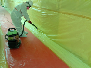 석면 잔재물은 고성능 HEPA필터가 장착된 진공청소기로 청소하거나 젖은 물걸레를 이용하여 습식으로 청소